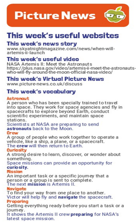 This week, Miss Monck led an exciting assembly about the upcoming launch of Artemis 2! The children learnt all about the project and what it takes to be an astronaut. If your child was inspired by the assembly, here are some useful websites for you to look at to find out more about our adventures to the moon!